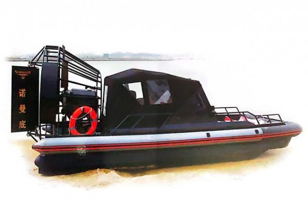 船體采用pvc為主體,外覆防彈材料。美國進口300HP發(fā)動機、碳纖維螺旋槳、減速箱,船底用高性能耐磨復(fù)合材料。